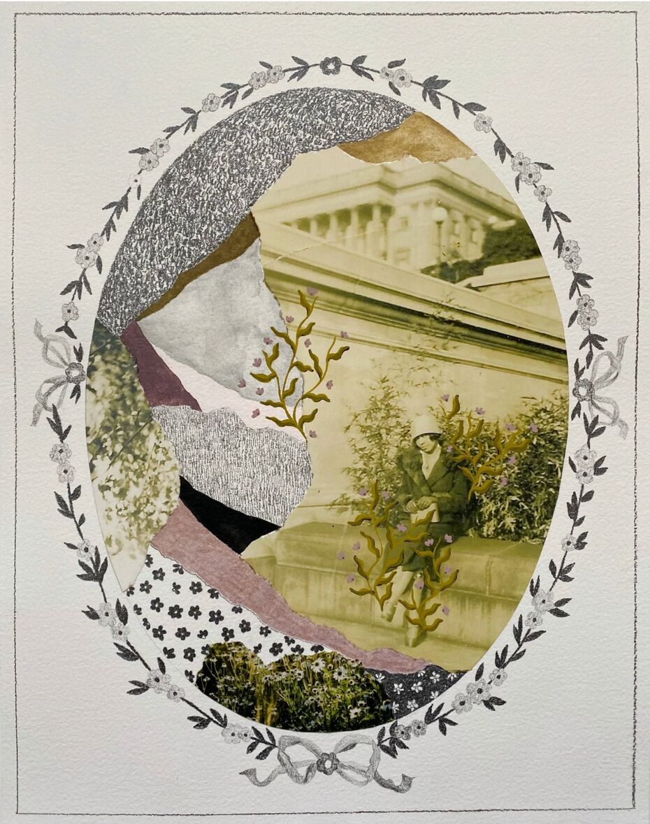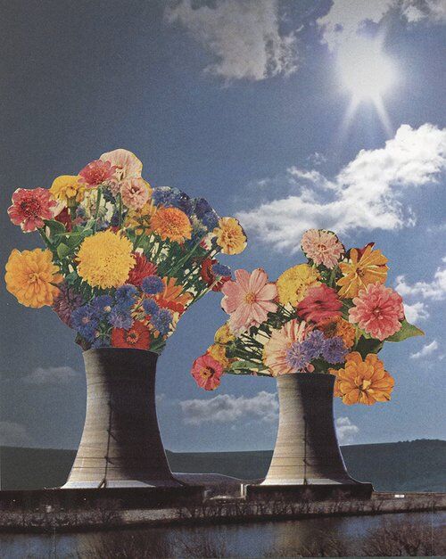 Посмотри на работы художников. Они сделаны в технике коллажа — из кусочков разных изображений. Обрати внимание, как растения появляются среди зданий. Эти картинки не изображают реалистичный парк или сквер в городе, они показывают взгляд художников на городское пространство и природу.