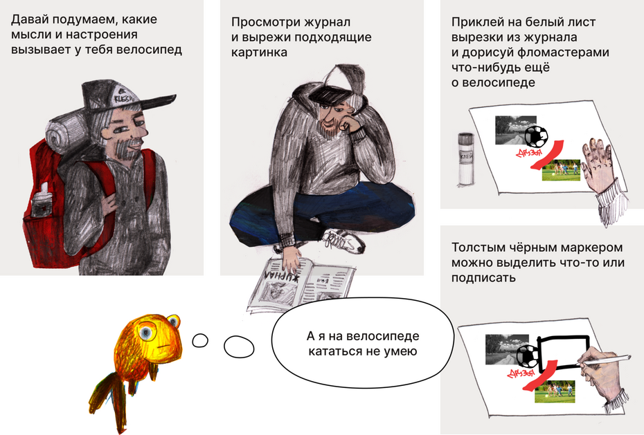 Представим, что велосипед не изобрели и нам нужно все свои впечатления и воспоминания собрать на доску настроения.