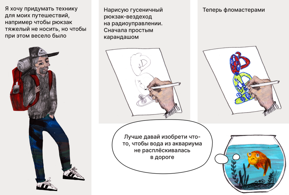 Подумав о том какую роль в нашей жизни занимает техника, сделай небольшой зин со своими зарисовками на эту тему.