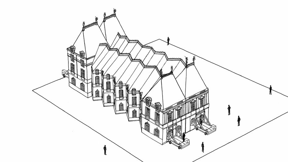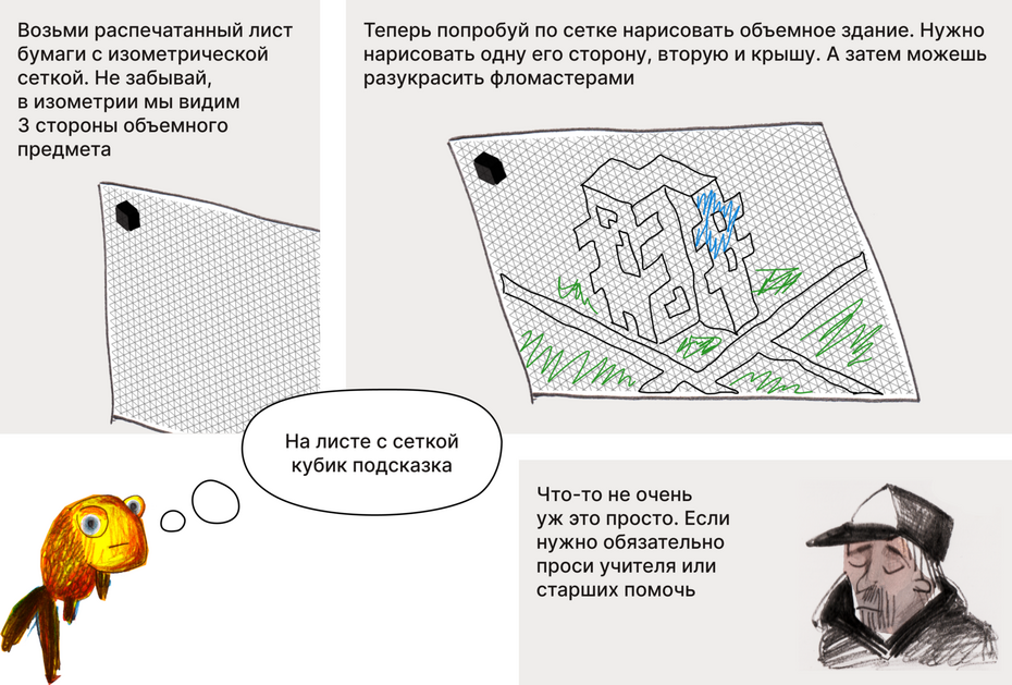 Нарисовать здание будущего по изометрической сетке.