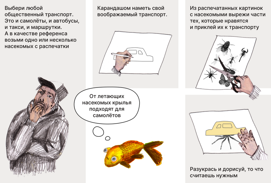 Референсами для всей этой техники были живые существа. Давайте и мы с вами тоже создадим транспорт из мультфильма Хаяо Миядзаки, а в качестве референса у нас будут насекомые.