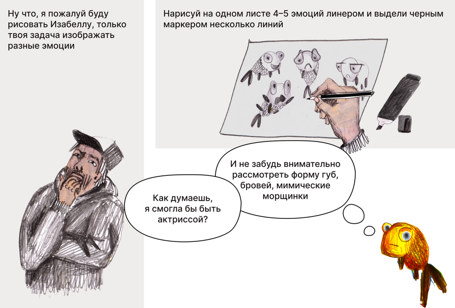 Эмоции и умение их точно сыграть, это самое главное в актёрской профессии. И для нас с вами, в создании персонажа это тоже крайне важно! Поэтому сегодня мы с вами будем рисовать эмоции, но для того чтобы их нарисовать, мы поочерёдно будем становиться актёрами, потому что рисовать мы будем с натуры.