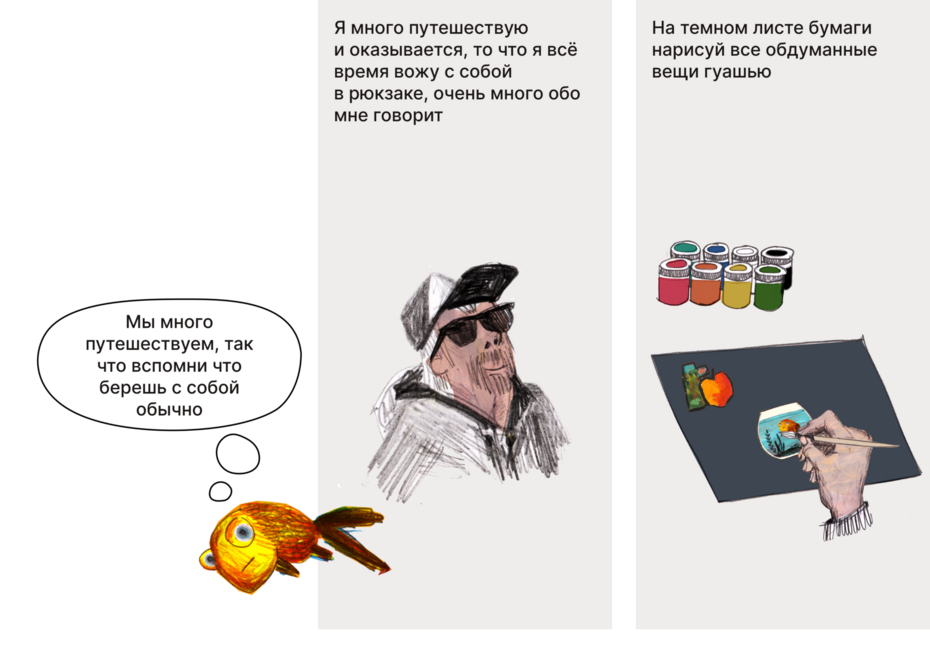 Любые мысли и рассуждения очень важны для творческого человека, который создаёт художественные проекты. И часто у художника есть с собой скетчбук. С английского языка это переводится как книга набросков. Кто-то зарисовывает в альбом то, что видит вокруг, кто-то зарисовывает идеи, кто-то кроме рисунков делает и записи. Всё это помогает художнику в творчестве.