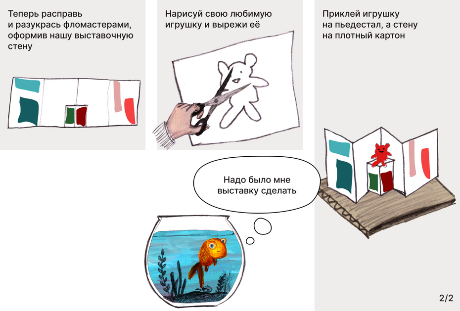 Сделать макет выставки для любимой игрушки.