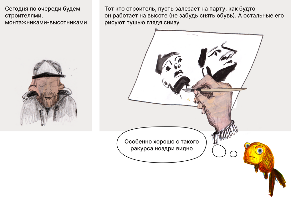 Нарисовать друг друга с необычного ракурса.