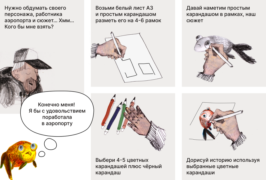Создать мини-комикс про животного, работающего в аэропорту.