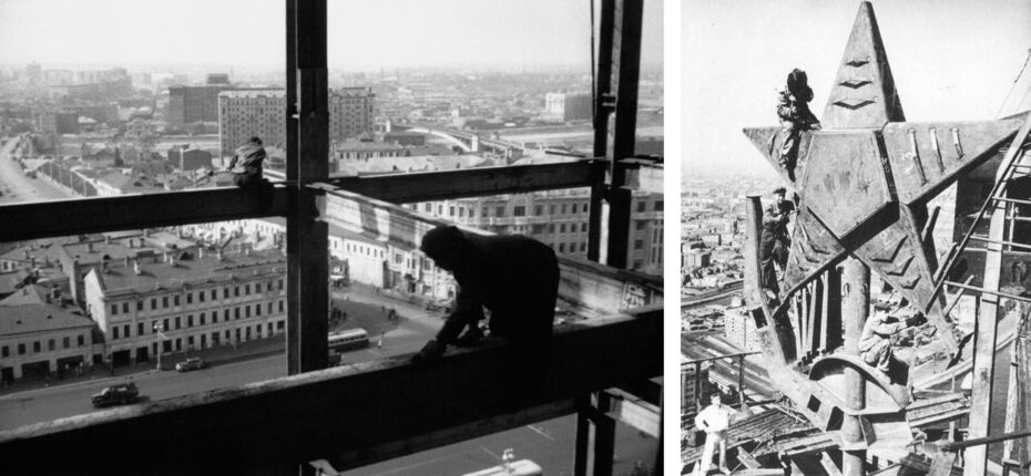 В Москве тоже есть высотные здания, которые строились очень давно, и фотографии с их строительства тоже сохранились.