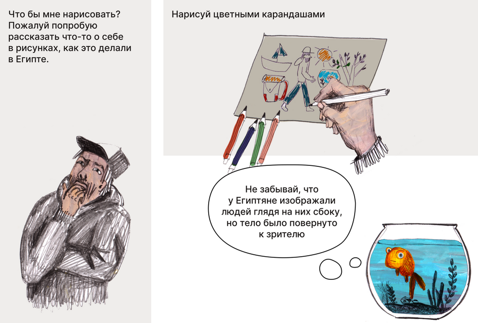 Давайте и мы попробуем рассказать о себе, своих буднях и важных для нас вещах таким способом — так, как это делали в Древнем Египте.